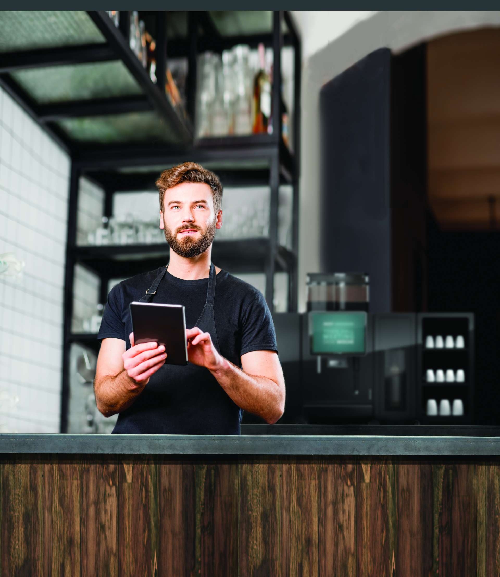 La uniformidad en toda su flota de máquinas de café está asegurada, al igual que las actualizaciones remotas de su concepto de bebidas de temporada o cambios en el menú