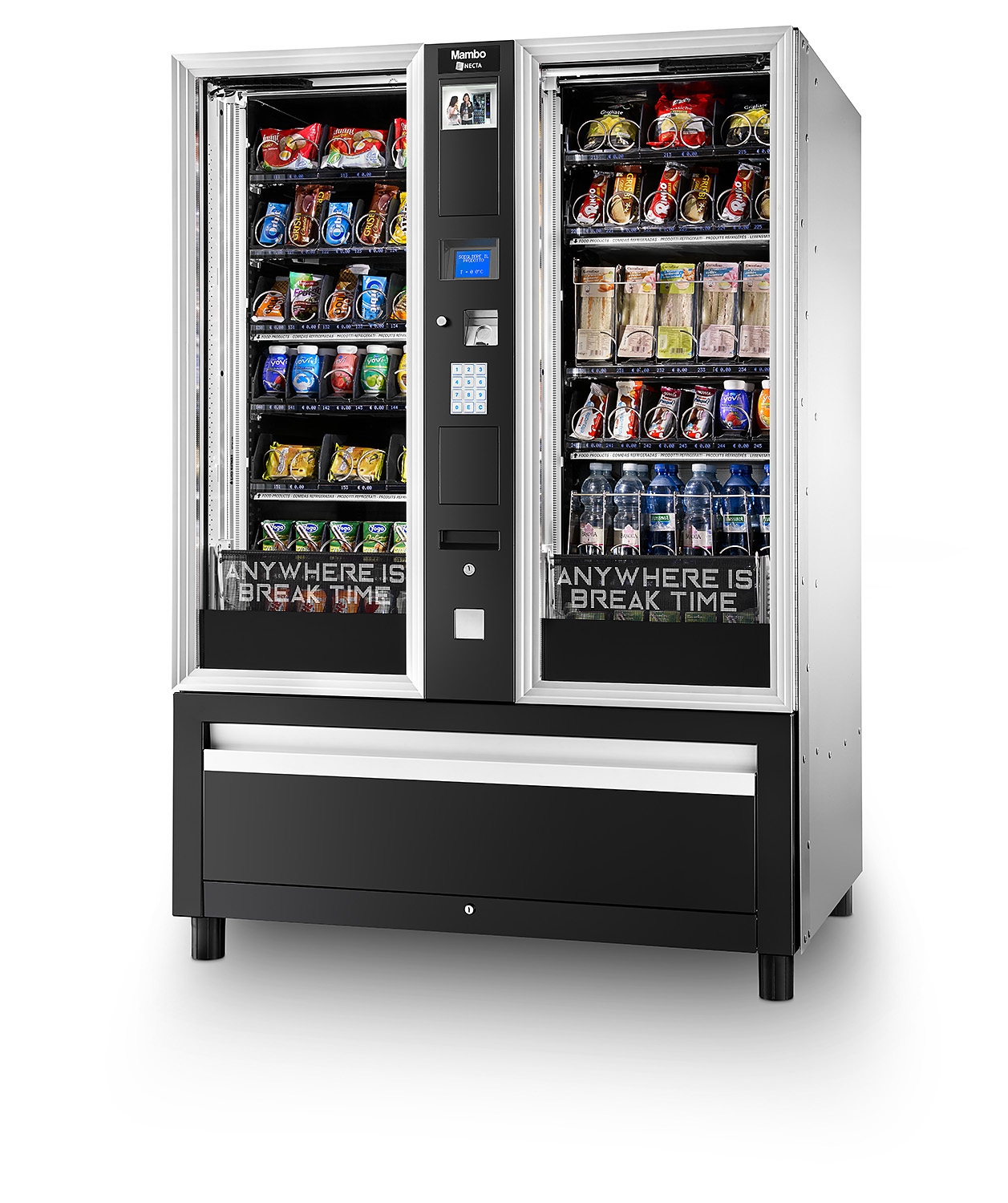 El multishop vending Necta anuncia la llegada de Mambo, el modelo Impulse que puede dispensar no solo alimentos, sino también una gran variedad de otros productos. Basta con una simple mirada para comprender lo innovadora que es esta máquina: Mambo parece un auténtico MultiShop, capaz de entregar hasta 84 selecciones de 14 bandejas, y eso es exactamente lo que es. Además, Mambo puede ofrecer productos de todas las formas y tamaños, gracias a la combinación de su gran canal abatible y su bandeja de entrega XL. Solo por la fuerza de sus características innovadoras, Mambo está destinado a convertirse en una máquina de referencia, particularmente en la categoría de ubicaciones semipúblicas, que abarca aeropuertos, hoteles y otras áreas de gran afluencia, donde cualidades como la solidez y la variedad de productos. En oferta hay cualidades ganadoras.
