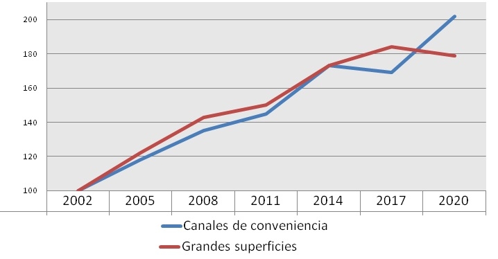 Como producto de esta situación, desde al año 2010 se está viviendo un crecimiento exponencial de los comercios que se basan en la convenciencia, frente a las grandes superficies que, sin perder cuota de mercado, están ralentizando su crecimiento.