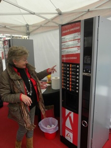 Bajo una carpa se instalaron máquinas distribuidoras y se ofreció café gratuito a los viandantes, en horario de 11 a 17 horas.