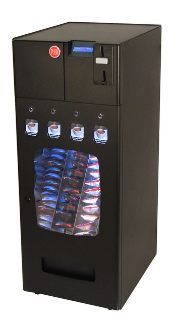 Además, el sistema incluye un selector de monedas, un display retroiluminado, canal para 200 vasos y un cajón especial para paletinas y azúcar.