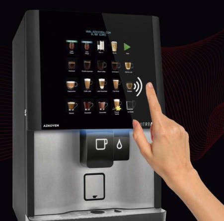La máquina funciona con la tecnología desarrollada y patentada por Azkoyen, el sistema Air Touch, que permite al usuario seleccionar el producto desde una distancia de seguridad de hasta 2 centímetros de la superficie del panel, reduciendo así el contacto. Según confirma Albert, cuando sus clientes conocen la opción de incluir esta máquina en sus oficinas, la venta se hace de manera automática.