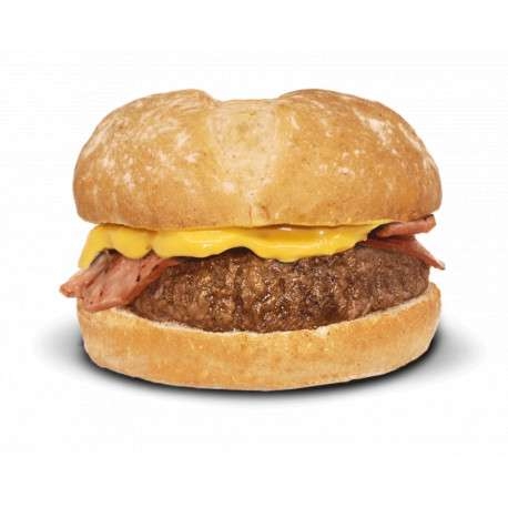 Pan de hamburguesa artesano, 180 gr de carne de ternera, bacon frito y salsa cheddar con jalapeño.